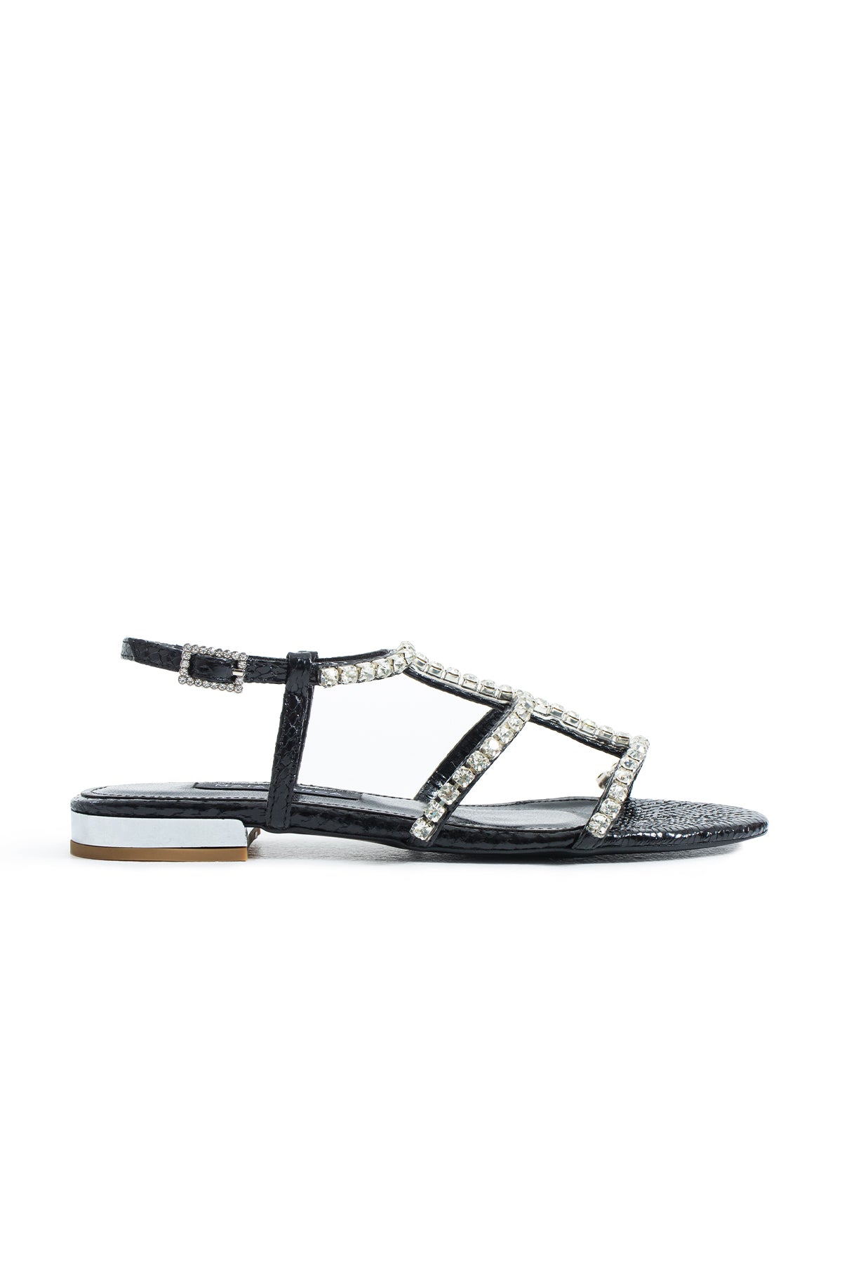 With its straps embellished with crystal stones, these sandals combine a powerful design with light.