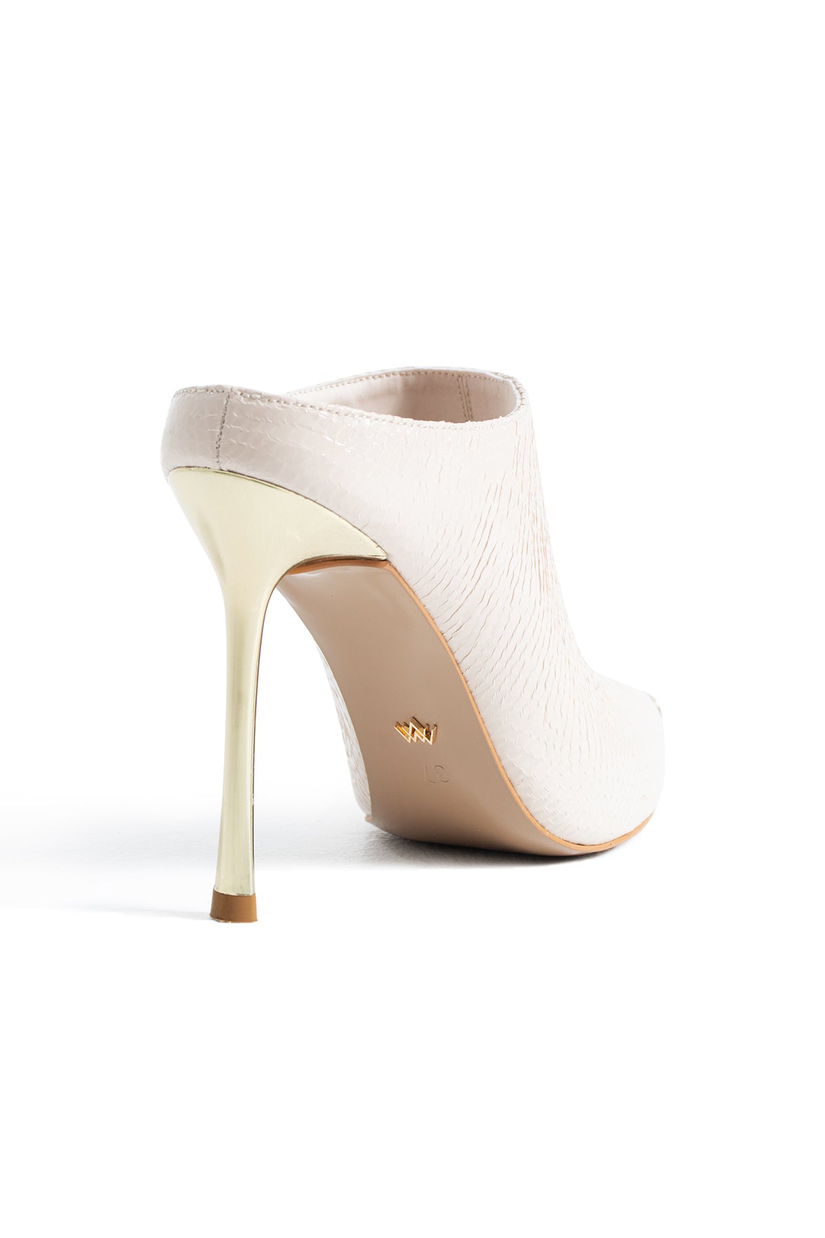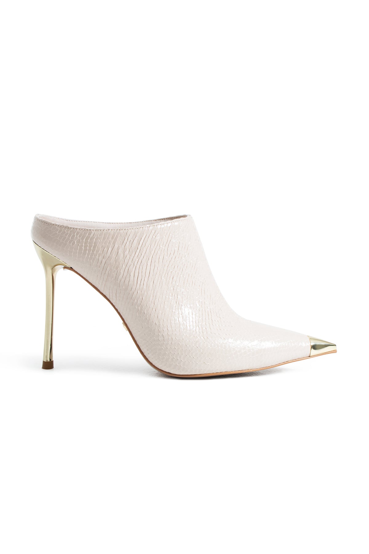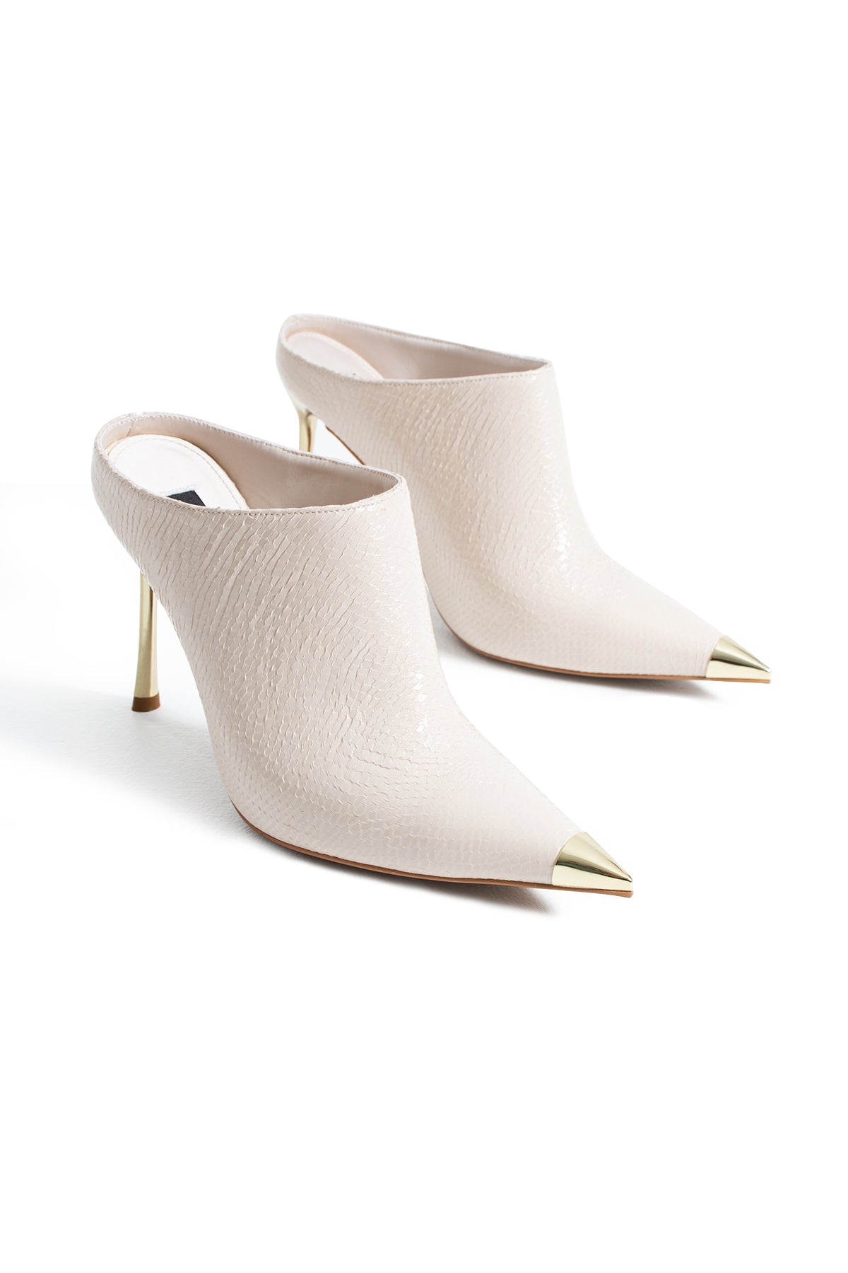 Arkası açık mule formu sayesinde kolay giyilebilir bir yapı sunarken, 10 cm topuk yüksekliği feminen ve güçlü bir duruş yaratır. Etkileyici karakteriyle bu model; minimal kombinlerden güçlü şehir stiline kadar pek çok görünümün tamamlayıcı parçası olmaya aday.